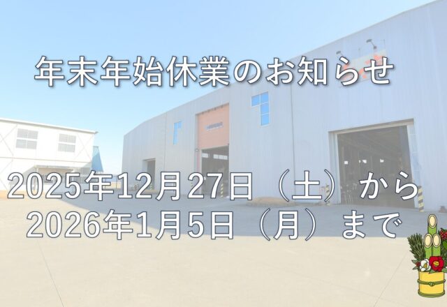 年末年始の休業のお知らせ